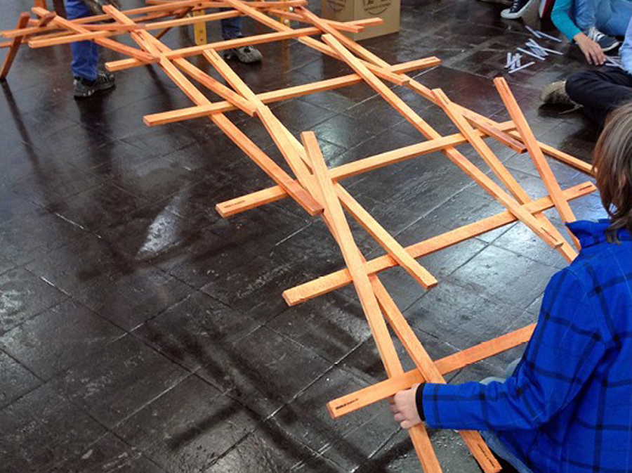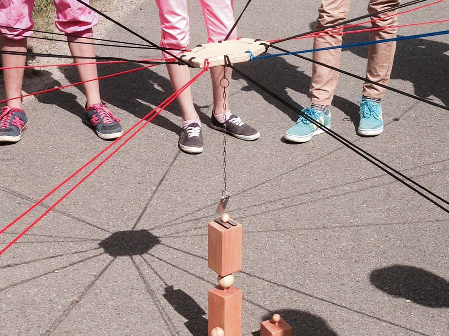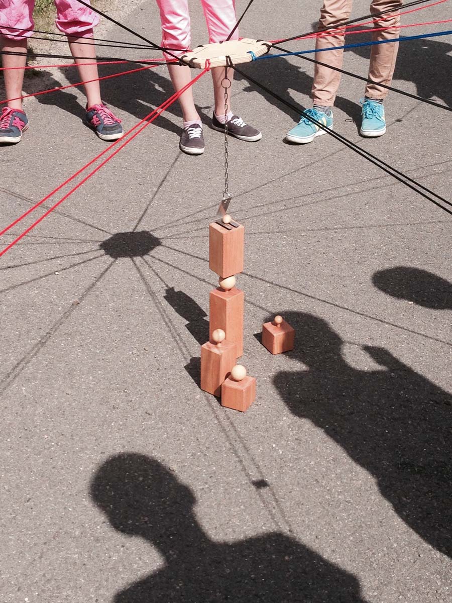 Mit begrenztem Material und gänzlich ohne Werkzeug müssen Brücken gebaut und Hindernisse überquert werden. Gefragt sind dabei vor Allem konstruktive Ideen und Teamgeist.