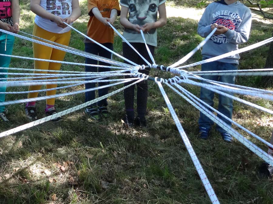 Die vielfältigen Aufgaben, die wir, mit verschiedenen Seilen ausgestattet, lösen werden, stärken die Klassengemeinschaft und das Zusammengehörigkeitsgefühl.